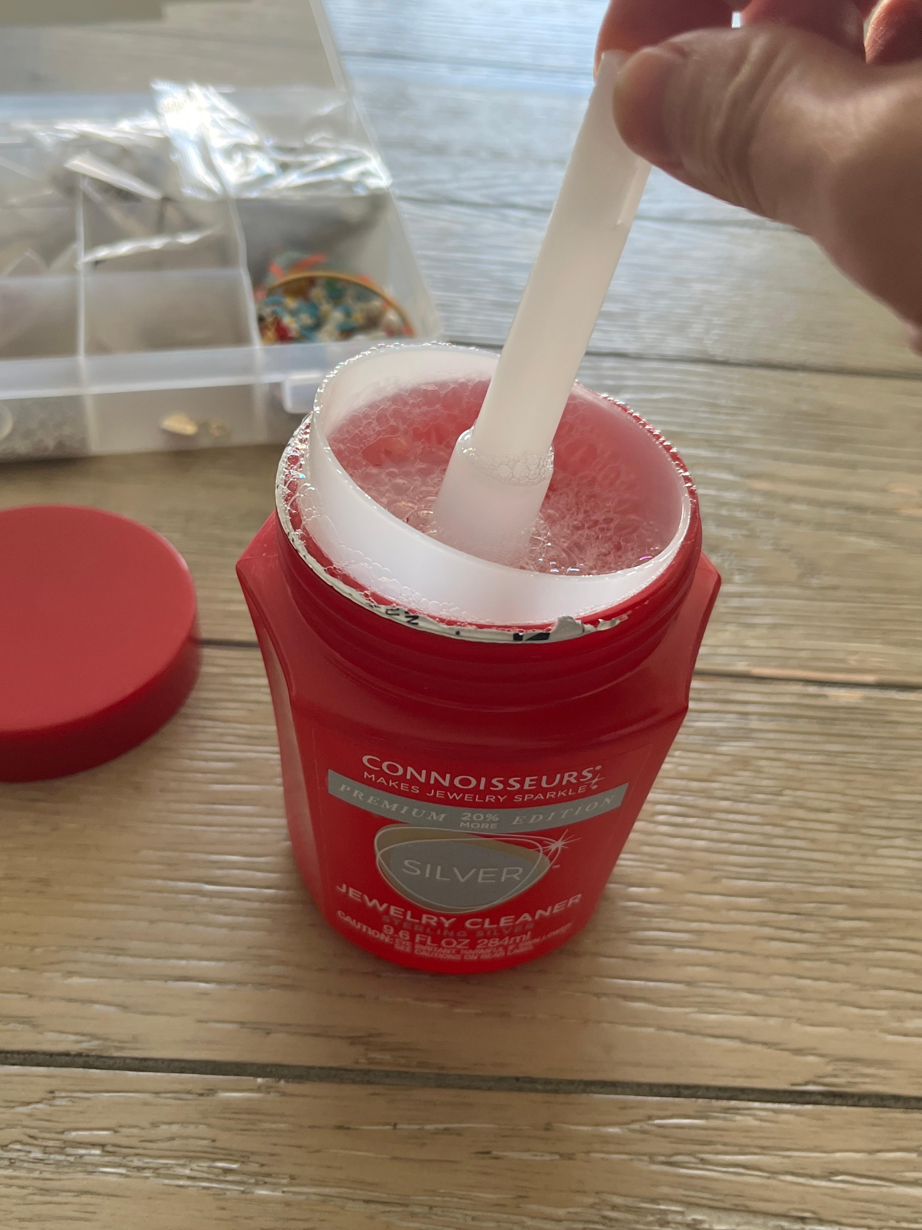 새까매졌던 반지와 팔찌를 세척액에 10초 정도 담갔다가 꺼냈다.