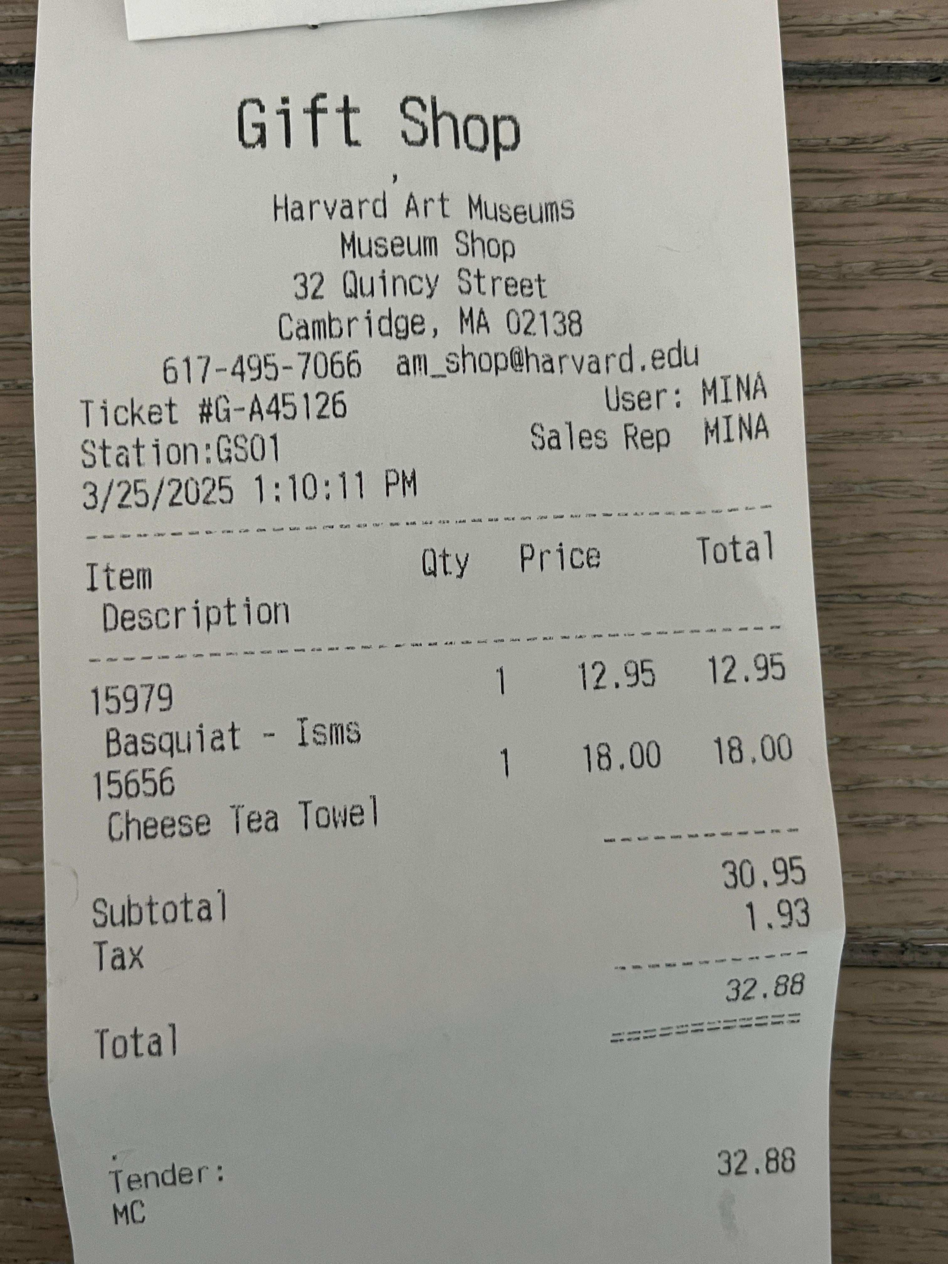 - 치즈 그림이 그려진 티 클로스 – 하버드 뮤지엄 굿즈엔 흔하지 않고 아티스틱한 아이템들이 많다. 평소 내가 탐내던 아이템이고, 사진 찍는 걸 좋아하는 친구의 취향을 고려했다.