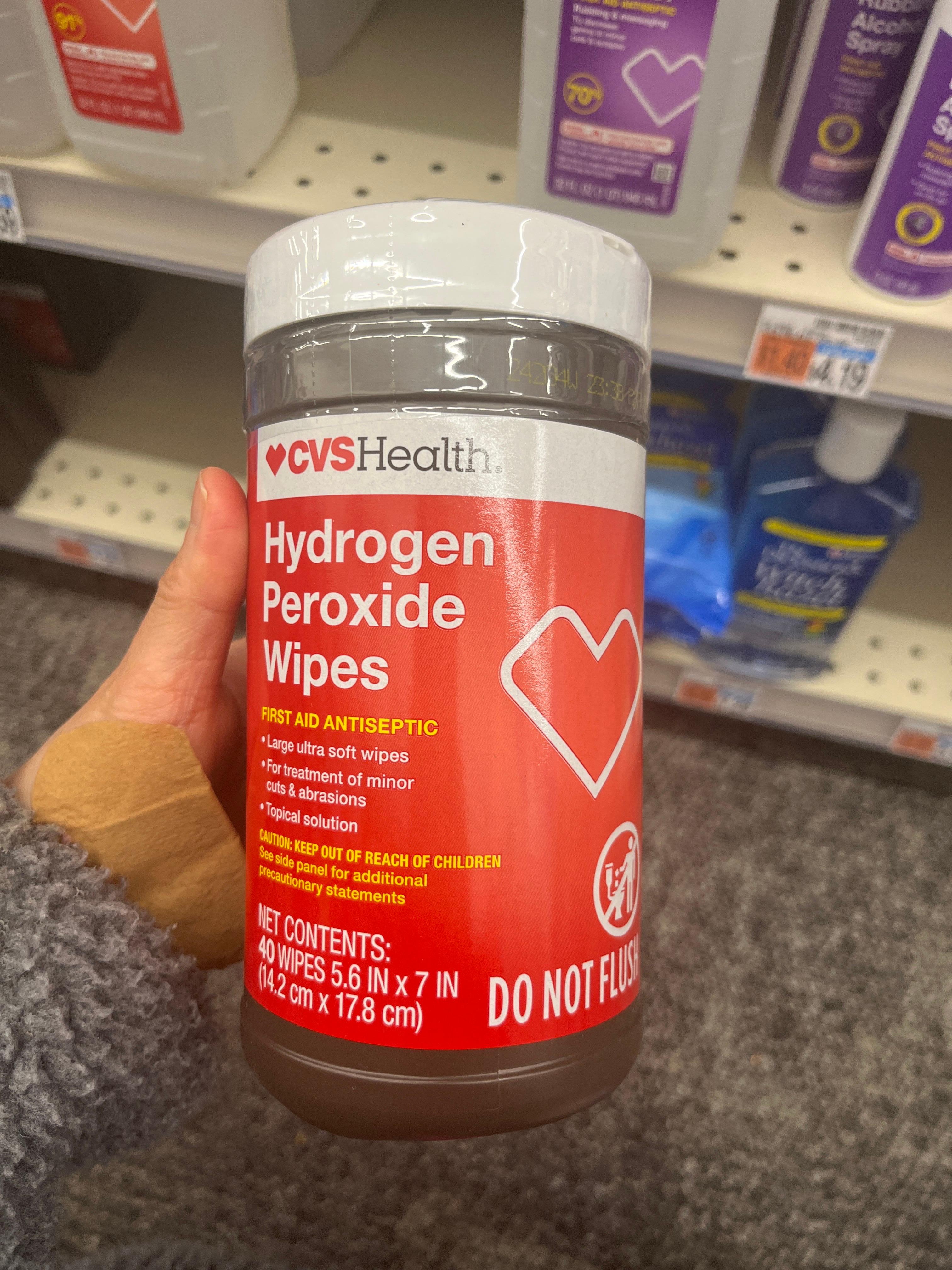 챗비서가 추천해준 것은 왼쪽 CVS 자사 제품으로 #Hydrogenperoxidewipes 입니다.