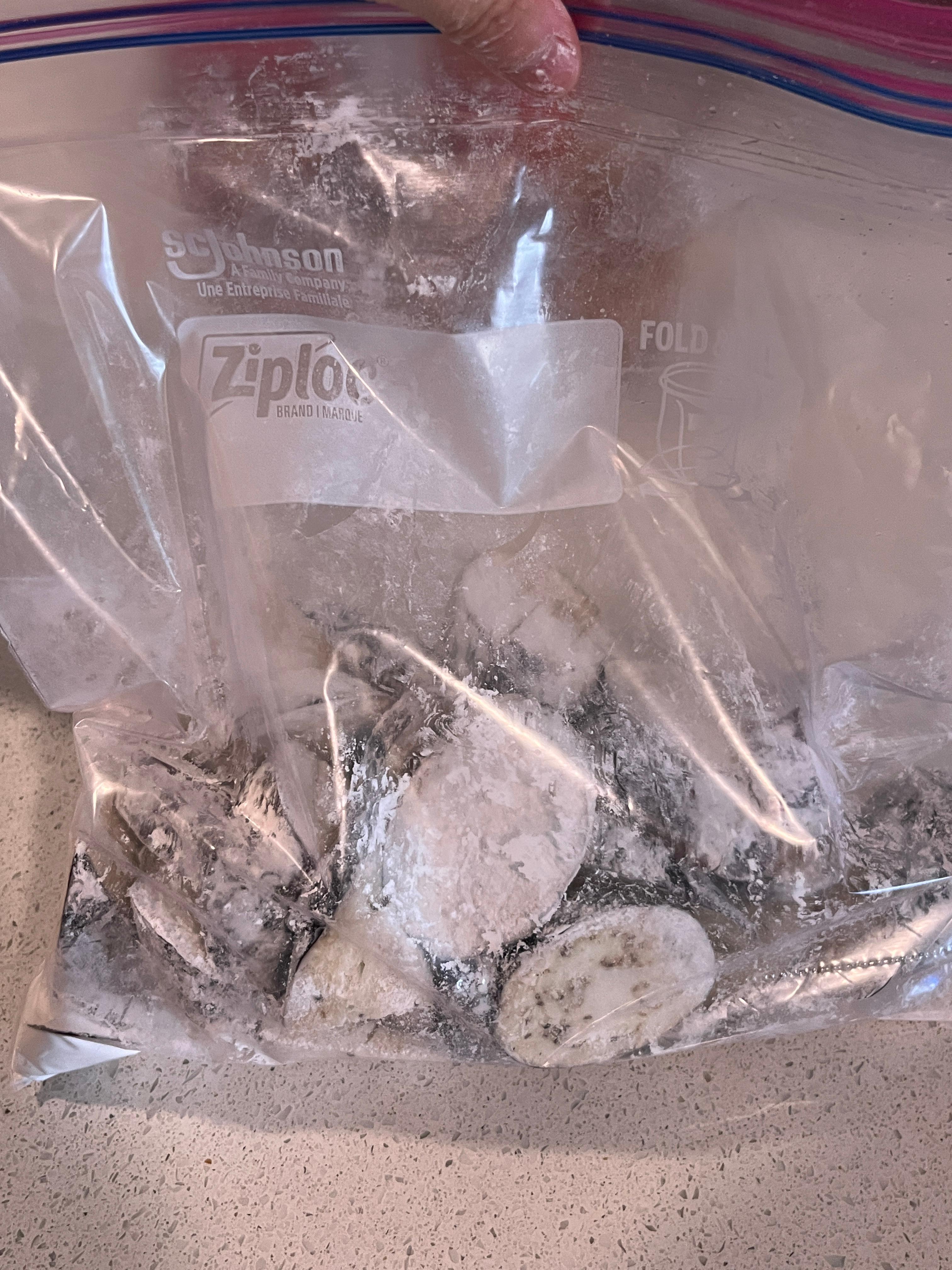 5. 물기를 페이퍼타월로 닦아 준 다음 전분가루를 골고루 묻혀준다.