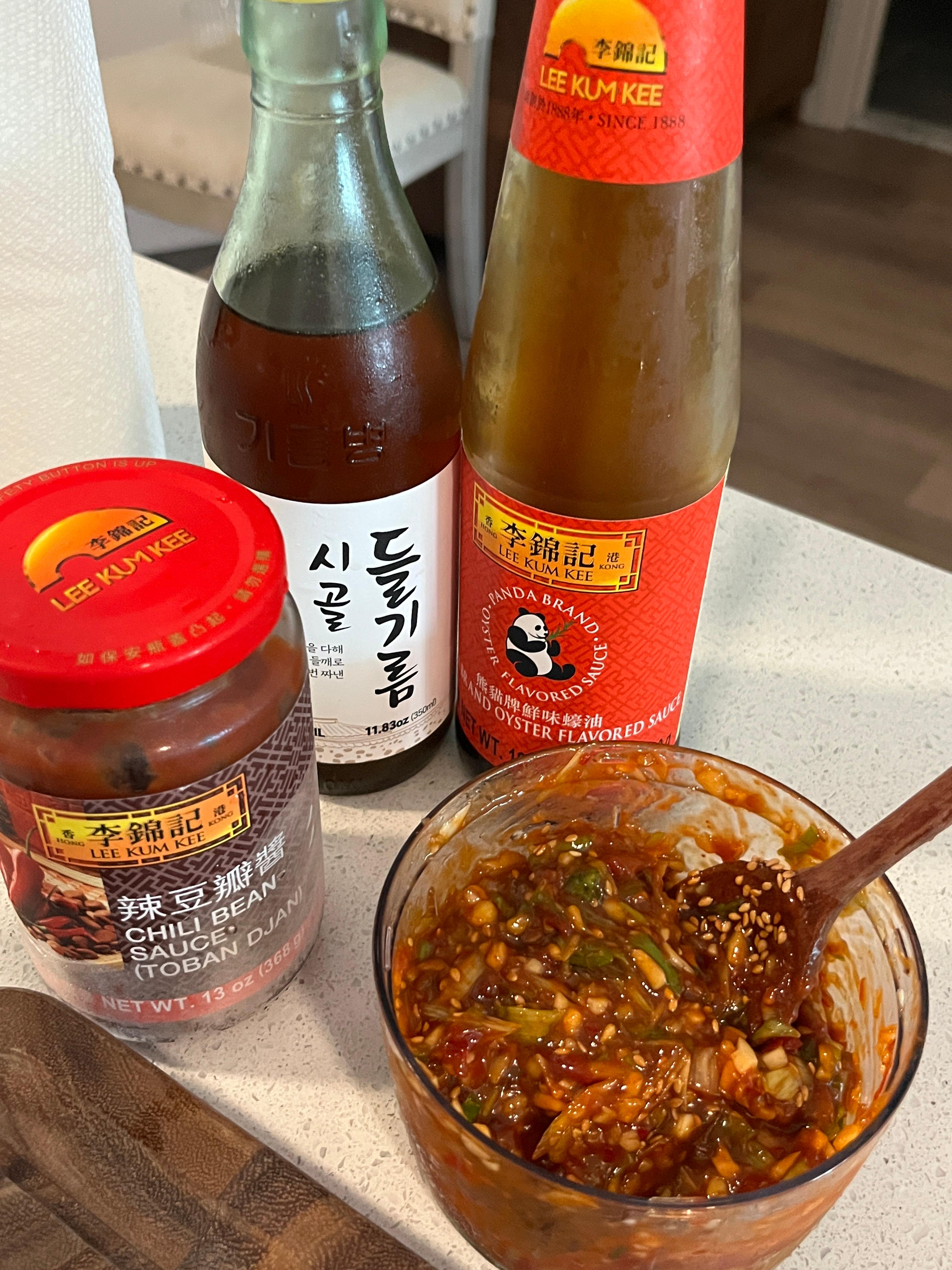 (양념 비율: 두반장 2T, 들기름 1T, 굴소스 1T, 생강과 다진마늘 각각 0.5~1T 취향껏, 깨, 쪽파2개 )